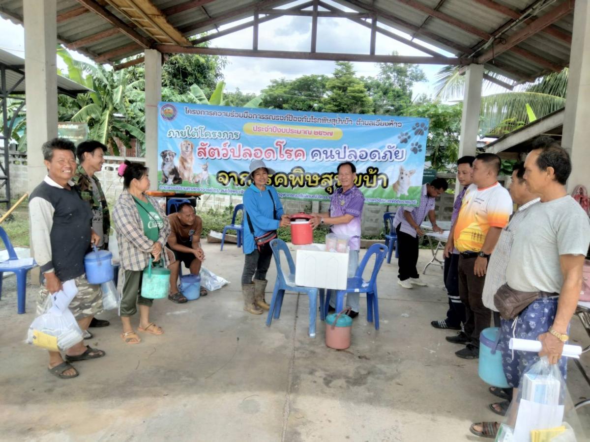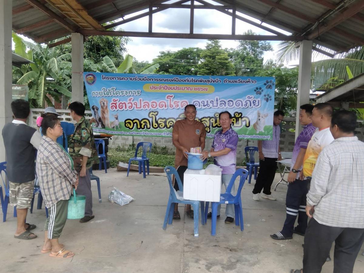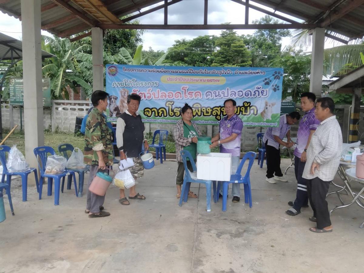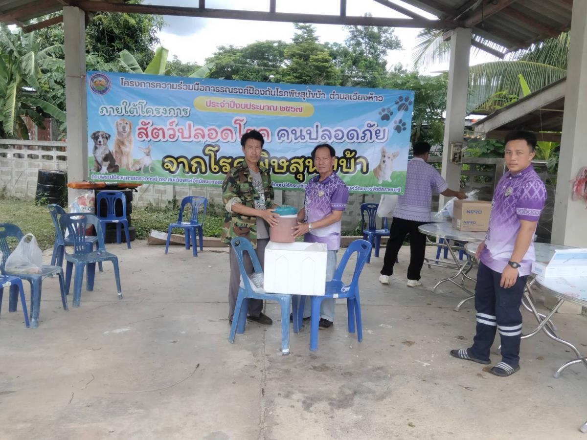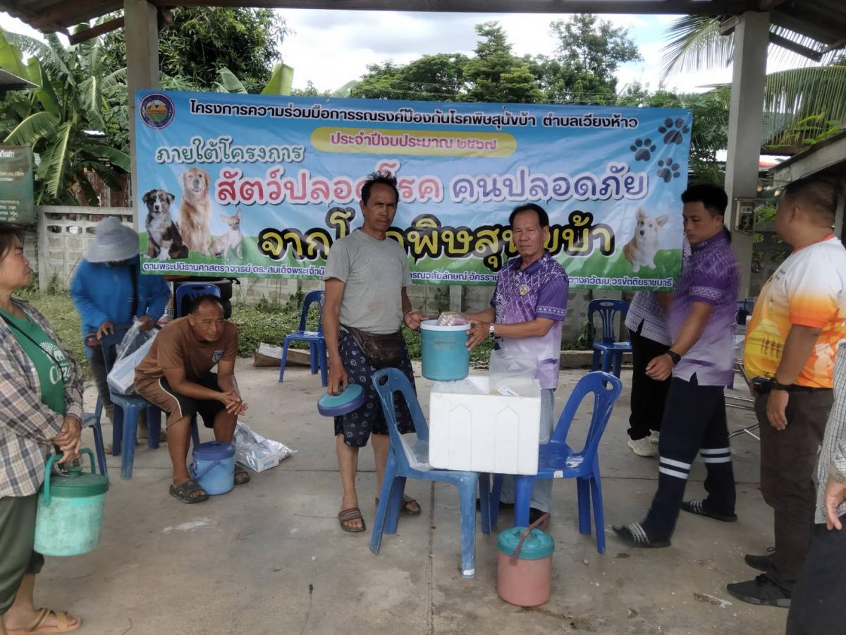 โครงการสัตว์ปลอดโรค คนปลอดภัย จากโรคพิษหสุนัขบ้า ประจำปี 2567 วันที่ 6 มิถุนายน 2567 นายทนง ตาสาย นายกองค์การบริหารส่วนตำบลเวียงห้าว ได้มอบหมายให้นายศิวกร กันทะวงค์ เลขานุการนายกองค์การบริหารส่วนตำบลเวียงห้าว มอบวัคซีนป้องกันโรคพิษสุนัขบ้า ให้กับอาสาปศุสัตว์ประจำหมู่บ้าน ทั้ง 8 หมู่บ้าน เพื่อดำเนินการฉีดวัคซีนให้กับสุนัขและแมวในพื้นที่ต่อไป อัลบั้มภาพ