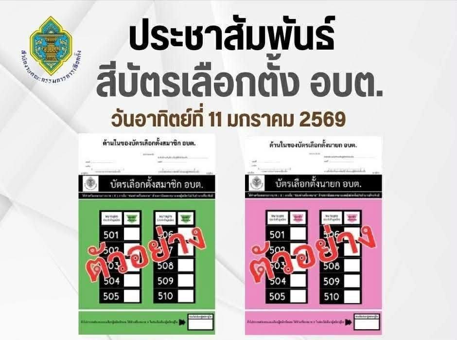 ประชาสัมพันธ์ สีบัตรเลือกตั้ง สีชมพู นายก อบต. สีเขียว สมาชิกสภา อบต. ประชาสัมพันธ์ สีบัตรเลือกตั้ง สีชมพู นายก อบต. สีเขียว สมาชิกสภา อบต. อัลบั้มภาพ